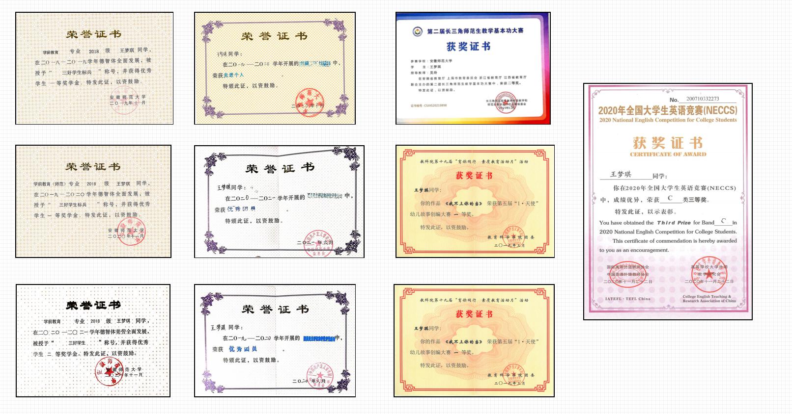 人生百年,始于幼学。作为一名学前教育专业的师范生,王梦琪时刻将自己看作教师队伍的预备军。踏实专注学习专业知识,连续四年获校一等、二等奖学金。认真夯实专业基础,苦练幼儿教师“弹、唱、舞、画”四项技能,在教科院师范生所能参加的最高级别竞赛——长三角师范生技能大赛中荣获二等奖。在大四上学期,她成功推免至南京师范大学,继续攻读学前教育学专业的硕士研究生。她也在各种文体活动中释放着自己的青春活力。获得“I·天使”幼儿故事创编大赛一等奖、“I·演说”青年演说家二等奖、“青春系列微团课”一等奖、“创青春”大学生创业大赛一等奖、红歌比赛一等奖等等。