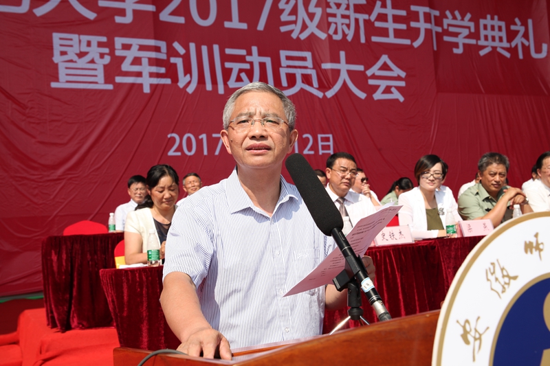 校党委副书记、校长张庆亮在致辞中,对全体新生表示衷心的祝贺和热情的欢迎!对辛勤培育的家长和老师们致以诚挚的谢意和亲切的问候!他从一个师者长者的角度,针对新生存在迷茫和困惑,教育引导大家“如何了解大学,正确开启大学生活”;并以一名新师大人的身份,邀请新同学共同“读懂师大、了解师大、热爱师大、荣耀师大”。