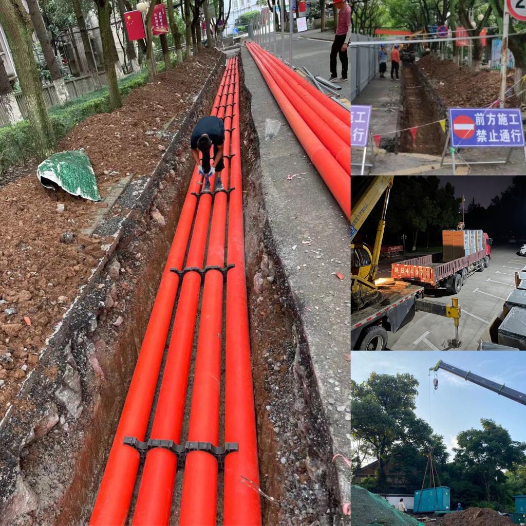 赭山校区建设年份早,一直以来只有一根10KV供电电缆供电,在该线路断电时就只能面临校园全部停电的局面,对学校的教学科研办公以及师生生活产生了很大的影响。根据供电保障相关规定,校内需要双源供电确保用电可靠性,但多年来由于种种原因一直未能实现。2020年下半年,学校果断决策,借助专项债资金,赭山校区双电源改造工程得以立项,总投资近600万元。经过前期电力设计等准备工作,2021年5月该项目进行公开招标,6月顺利开标,7月2日施工企业正式进场施工,铺设两路进校高压供电电缆,定制高压开关柜等设备。同时,为最大程度减小工程实施过程中对校内办公和居户生活的影响,总务处提前一个月发布通知,告知赭山校区所有单位和校内居民工程概况,在需要停电48小时原址更换开关柜的情况下,租赁5台大功率发电机,保障停电期间赭山校区居民、网络中心和重点教学单位的用电。8月3日下午3点,芜湖市高压供电网吉流124线和长中106线两路10KV高压线成功接入我校赭山校区新建高压电柜。下午4点,新建高压电柜经市供电局专业人员验收合格,各高压电柜顺利合闸,比原计划提前了15个小时。至此,赭山校区双电源改造工程顺利完成。