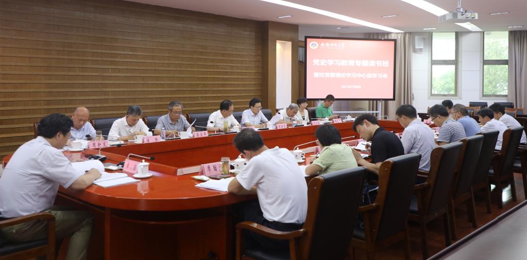 在党的十八大以来的历史学习专题,校党委常委、副校长陆林领读《论中国共产党历史》中《中华民族伟大复兴历史进程的大跨越》;校党委常委、副校长任永领读《习近平新时代中国特色社会主义思想学习问答》中《如何理解我国将进入全面建设社会主义现代化国家的新发展阶段?》;校党委常委、办公室主任曾黎明领读《中国共产党简史》中《全面建成小康社会和开启全面建设社会主义现代化国家新征程》等原文篇目。在专题研讨环节,党委常委、教务处处长周端明从党的十八大以来中国经济高速发展的奇迹和国家社会稳定的奇迹切入,阐述了有为政府对经济社会发展起到的重要作用。蒋家平从习近平总书记“七一”重要讲话中的提到的“更为主动的精神力量”谈到习近平总书记历次讲话中对党的宣传思想工作的要求,阐释了宣传思想工作从正本清源到守正创新的时代要求。周新发结合学校纪检监察工作,谈了坚持党的集中统一领导,坚决做到“两个维护”;坚持以人民为中心,坚决站稳人民立场;坚持改革创新,适应形势任务的变化;坚持扭住责任这个牛鼻子,发挥组织优势;坚持严管厚爱相结合,激励与约束并重,坚持不懈正风肃纪反腐五点学习体会。