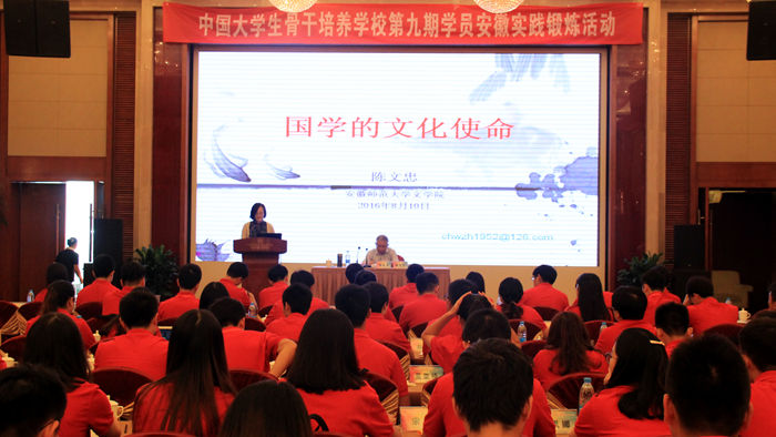 据悉,中国大学生骨干培养学校安徽实践锻炼活动由共青团中央、中共安徽省委、全国学联主办,共青团安徽省委、安徽省学联承办。自8月1日启动以来,学员们参加了多场理论学习,分赴六安、滁州、安庆、芜湖开展实践锻炼,并于8月9日抵达我校参加总结阶段活动。为了承办好总结阶段活动,学校专门邀请了文学院博士生导师、中国诗学研究中心研究员陈文忠教授,芜湖市委常委、军分区司令员吴小明为“大骨头”们分别作中国传统文化、国防教育专题报告,邀请新闻与传播学院党委书记、硕士生导师胡靖与“大骨头”们共同交流分享“大学生骨干如何健康成长”这一主题,并组织了来自校学生会、社团联合会、青年通讯社的学生骨干服务活动开展、与“大骨头”们共同学习交流,产生了良好的教育效果。