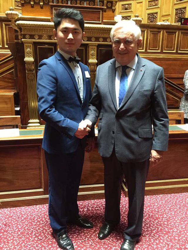 作为中国企业家代表团之一的吴明明,在此次巴黎之行受到了法国前总理现任参议院副议长拉法兰先生的亲自接待,会议期间,他代表眀日智能科技股份有限公司作了关于气候和环保的主题演讲,他表示,中国企业家有责任也有信心用实际行动为创建绿色地球贡献一份力量。同时在大会中,他代表中国青年发声,承诺会一直在用实际行动为保护全球气候贡献自己的力量。