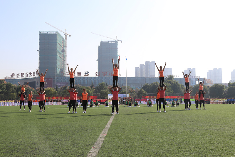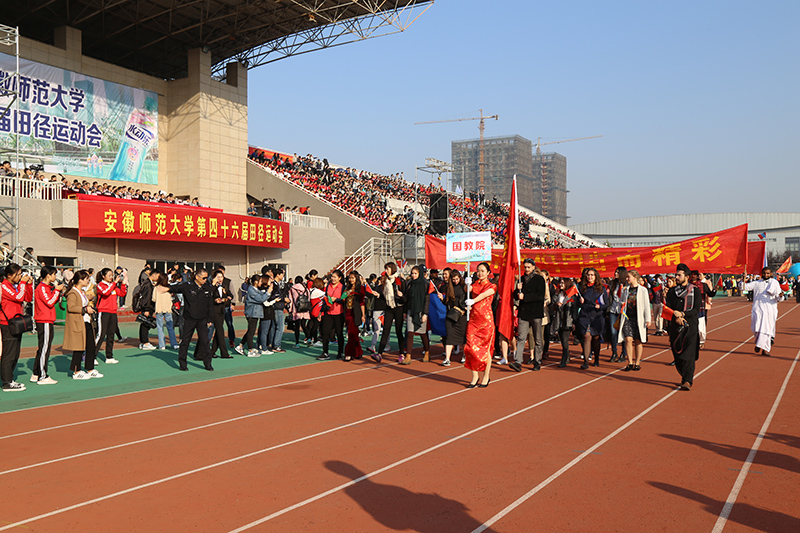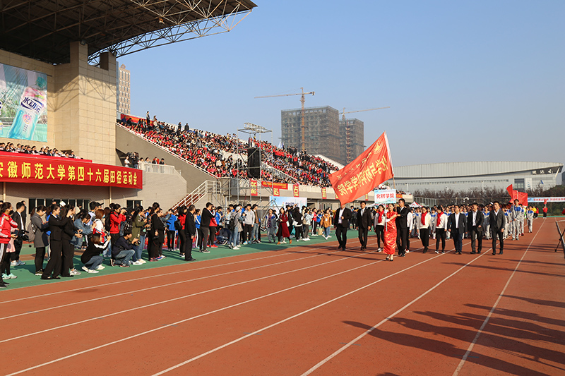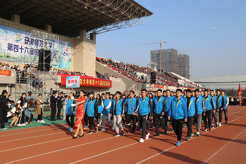 开幕式上,运动员代表及裁判员代表上台宣誓,表示将严守比赛规则,文明比赛,公正裁判。校党委书记顾家山郑重宣布“安徽师范大学第46届田径运动会”开幕。接下来精彩纷呈的体育艺术汇演让人大呼过瘾。舞狮表演者一跳一跃的动作刚劲有力、扑、跌、翻、滚无一不惟妙惟肖,令全场欢呼阵阵。拉丁舞表演者轻盈动人,白色舞裙在风中飘扬,素色的团扇与油纸伞透出江南女子的袅娜诗韵;啦啦操展现了青春与活力的碰撞;民族舞恢弘大气,蓝白衣裙配上红色折扇,犹如锦鲤戏水,优美动人,突出了江南水乡的独有风韵;压轴登场的《中国范儿》将各式舞蹈交相呼应,拉丁与街舞相得映彰,隆隆鼓声伴着婀娜多姿的民族舞,将这场别开生面的体育表演推向高潮;大型“工间操”表演积极响应和落实了全民健身的理念,以蓬勃朝气、昂扬斗志献礼十九大。