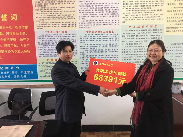 座谈会上,季爱新对我校扶贫工作作了简要介绍,指出学校一直以来高度重视此项工作,每年选派优秀的青年干部驻村扶贫。赵红将我校教职工的爱心捐款6万余元正式移交给了三德村有关领导。凉亭镇党委书记杨文龙高度肯定了师大选派干部的辛勤付出,为凉亭镇和三德村实现户脱贫、村出列做了不少实事,受到政府和百姓的认可。
