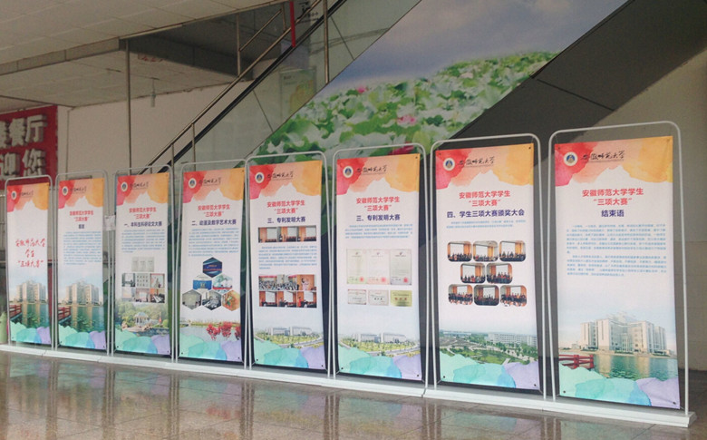 本网讯 (科研处 姚莉莉)12月23日-28日,学生“三项大赛”成果在花津校区和赭山校区相继展出,通过展板的形式,具体介绍了我校学生“三项大赛”——本科生科研论文大赛、动漫及数字艺术大赛、专利发明大赛自2008年开展以来的具体情况。本科生科研论文大赛自2012年举办以来,先后共有 7000多人次参与,共收到3036件参赛作品,评选出优秀作品486件,2013-2015年连续出版《求真寻路——本科生科研论文大赛优秀作品集》。动漫及数字艺术大赛自2010年始,已成功举办六届,收到1827件优秀作品,评选出458件优秀作品,大赛组委会全面梳理历年来优秀动漫大赛作品,制作《安徽师范大学2010-2013年动漫大赛回顾》影视光盘和《2015年动漫及数字艺术大赛优秀作品集》展示近年来的一些优秀动漫作品。专利发明大赛自2008年开始,共举办八届,参赛作品1059件,获奖作品609件。学校组织优秀专利发明作品参加芜湖市大学生专利创新大赛,连续三年获得“优秀组织奖”称号,赛后作品中超过200件成功申报专利。我校专利发明大赛的成功模式,被纳入到“中国专利周”活动中,并被安徽省知识产权局和芜湖市知识产权局作为典型向其他高校推广。