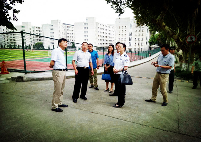 本网讯(保卫处 孙成岗)8月29日下午,芜湖市副市长张志宏、芜湖市消防支队支队长巩培爱、芜湖市公安局副局长方林红、镜湖区副区长杨燕等人一行深入我校赭山校区,全面检查指导学校消防安全工作。校保卫处处长孙成岗陪同检查。