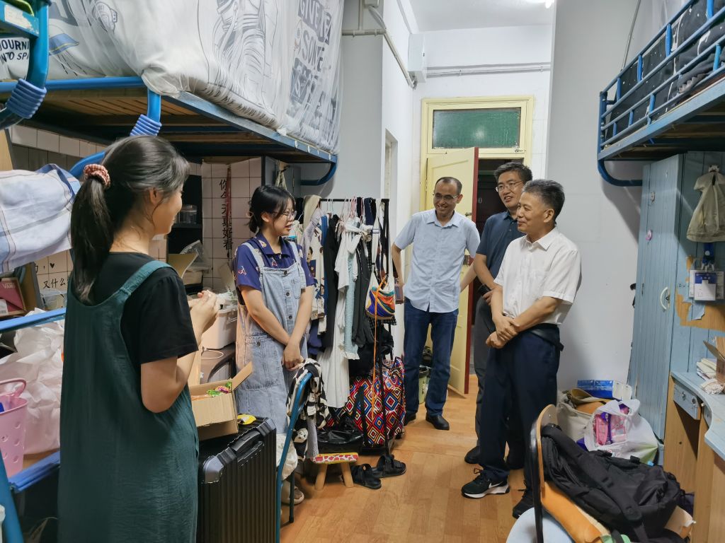 7月17日下午,芜湖市突降暴雨,阵风达7级以上,并伴有雷电、短时强降水等强对流天气。为及时排除安全隐患,确保暑期留校学生妥善学习和生活,校党委常委、副校长陆林于当晚带领学生处负责同志冒雨看望慰问暑期留校学生,全面了解暑期留校学生学习生活情况。