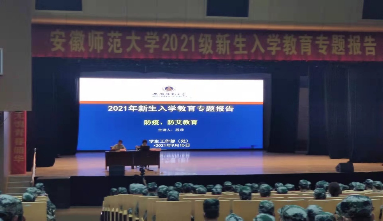 防疫防艾做好疫情防控。校医院副院长段萍应邀走进花津大礼堂,为新生做了“防疫防艾”教育主题报告。段萍从预防传染性疾病的重要性出发,通过对新冠肺炎和艾滋病两大病症的症状、传播途径、防护措施等方面的详细介绍,教育引导同学们珍视生命,尊重科学,强化防范意识,提升防护能力,维护生命安全和校园安全。
