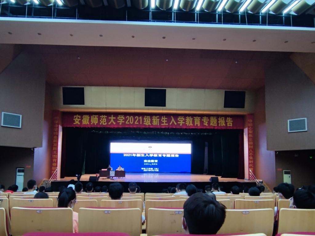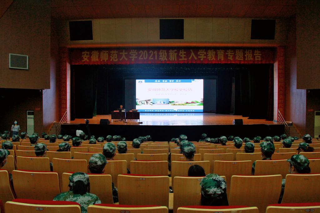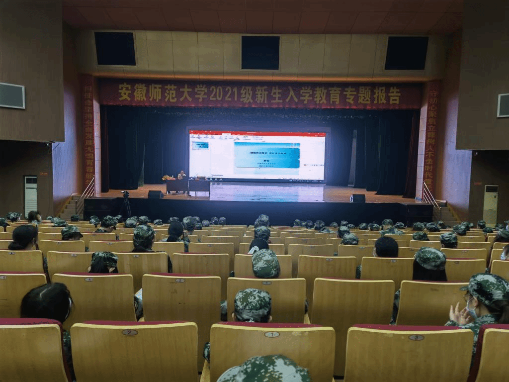 校史校情共享爱国爱校情怀。“潜岳苍苍,江淮汤汤。夏商肇启,雍容汉唐……”礼堂里回荡着振奋人心的歌曲,新生们跟随着音乐打着节拍,同唱《我和我的祖国》与《安徽师范大学校歌》,现场气氛热烈,歌声婉转动听。一张张青春而坚定的脸庞,一阵阵真挚而热烈的歌声,是2021级新生对祖国的热爱和对青春的颂扬。马克思主义学院陈孔祥教授向新生讲授了安徽师范大学的历史,讲座围绕时代背景展开,纵观古今,谈史论今,既帮助新生了解了师大的校史,又让新生明确了学校的发展定位和未来的努力方向。