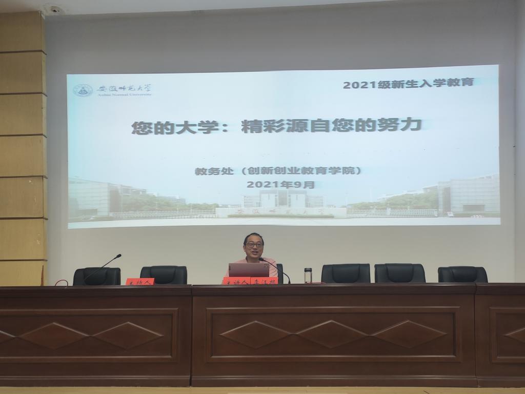 名师导航新生入学第一课。9月13日,系列报告首讲在赭山和花津两个校区同时拉开帷幕。赭山校区首讲“名师谈大学”专题教育邀请了“全国五一劳动奖章”获得者、教育科学学院博士生导师阮成武教授为新生上了“开学第一课”。阮成武以《本科奠基人生路——寄语2021级本科生同学》为题,结合自身求学经历和工作生涯,从“社会发展”、“知识发展”、“人生”三个角度出发,详细阐述了大学生活专业性、创造性、实践性的特点,生动诠释了本科生之“本”,强调了“本科”在人生转型中的支点作用和人生攀升过程中的方向作用。花津校区首讲“四史”专题教育邀请了全国优秀共产党员、全国最美思政课教师、马克思主义学院博士生导师路丙辉教授主讲。路丙辉从“什么是走进师大”“为什么要走进师大”“怎样才能真正走进师大”三个层面系统阐述了“走进师大”的含义、原因和方法。他紧抓学生日常生活的特点,将讲座主题与学生日常紧紧相连,将知识性和趣味性结合一体,引导2021级新生明确大学学习和生活的目标。两个校区的礼堂均座无虚席,循循善诱的名师们指导和鼓励同学们以饱满的热情、坚定的信念和积极的态度投入到大学生活当中。