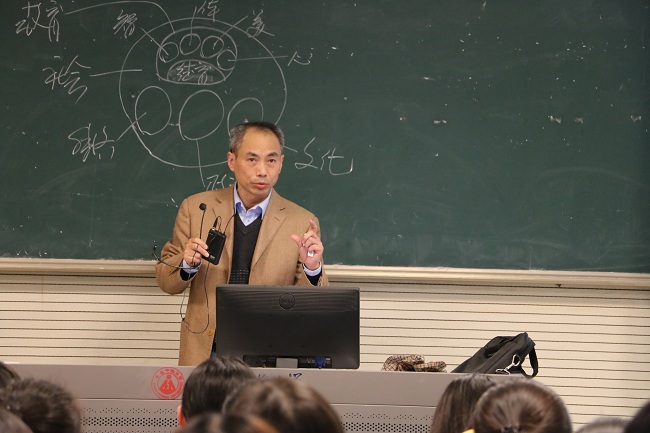 金维才教授用一张德育与社会经济、政治、文化等的关系示意图简要回顾了前面的授课内容,并以此为出发点和基础,讲解了德育在教育中的地位、德育的特殊功能和一般功能,认为德育的特殊功能在于对智育、体育、美育、心育都能发挥其特殊的作用,如德启智、德补智、德助智、德润身等,德育的一般功能在于导引功能、动力功能与整合功能等。金老师在授课过程中十分注重运用中国传统文化来阐释德育的功能,如大量引用了孔子、孟子、荀子、朱熹、陶行知、苏霍姆林斯基等中外大家在著作中的相关论述作为佐证,使其讲解有理有据。正是因为金老师追本溯源式的学术探究,赋予了“德育的功能”这一看上去简单的教学内容深刻的传统文化内涵。