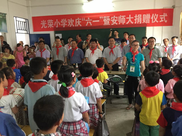 6月1日下午,学校办公室主任曾黎明一行及学校驻三德村扶贫队工作人员来到凉亭镇光荣小学,亲手为这里的贫困学生送来节日的祝福和“微心愿”礼物。宿松县政府教育督导办公室主任郭方瑞、凉亭镇党委书记杨文龙、凉亭镇教管办主任毛长生等参加了此次活动。
