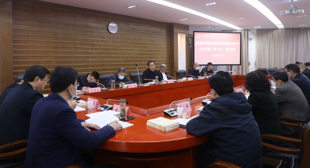 3月31日,学校召开党委常委会暨党委理论学习中心组(扩大)学习会,深入学习贯彻习近平总书记在全国两会上的重要讲话精神和全国两会精神,深入学习贯彻习近平总书记在中央党校中青年干部培训班上的重要讲话精神,深入学习贯彻中央关于推动党史学习教育常态化长效化的文件精神,研究部署学校贯彻落实工作。校党委书记胡朝荣主持会议。校领导朱家存、陆林、周新发、熊宇杰、任永,校党委常委、办公室主任曾黎明、教务处处长周端明,校党委委员,各部门、各单位主要负责人和院级党组织负责同志参加学习会。