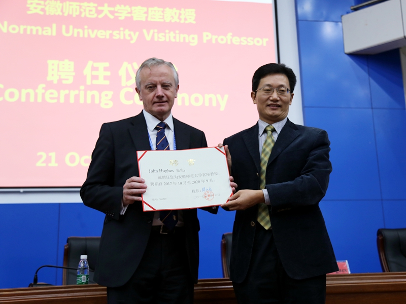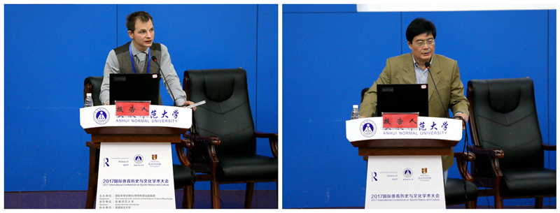 开幕式上,张庆亮校长向莅临我校的各位专家学者表示热烈的欢迎及感谢。他指出此次大会具有重要的理论与现实意义,必将进一步促进国际体育历史与文化的学术交流,推进亚洲地区民族传统体育发展,希望学校中青年体育工作者珍惜机会、虚心学习,不断提高我校体育学科的建设发展水平。Bangor大学校长John Hughes代表大会协办方致欢迎词,他认为此次会议是一次非常权威的学术盛会,他表示非常期待与来自不同群体的人们对话,交流对体育的认识和理解,并期待与我校在今后的体育科研与教学中有更进一步的合作。《国际体育史》期刊编辑主任Alejandra Leach-Nunez代表大会主办方致辞,她指出《国际体育史》期刊是体育史研究领域世界一流学术期刊,会后将从本次会议的录取稿件中选取优秀论文,在2018年的期刊上发表,让芜湖会议的成果与全世界分享。致辞后,Bangor大学与安徽师范大学进行了两校合作办学协议签署仪式,Bangor大学John Hughes教授受邀担任安徽师范大学客座教授。