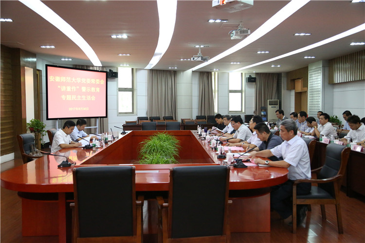 在听取班子和个人的批评和自我批评后,王铸代表督导组对专题民主生活会进行点评。他指出,安徽师范大学党委坚持问题导向,以“陈、杨、周”以及身边典型案例为镜鉴,以本次民主生活会为契机,对照检查本单位存在问题,深刻剖析产生根源,制订切实可行措施;紧密联系思想、工作、学习和作风实际,坚持把自己摆进去,对照检查深入、相互批评严肃、整改措施全面,达到了碰撞思想、凝聚共识、增进团结和振奋精神的目的,是一次高质量、高水平的民主生活会。王铸强调,校党委要落实全面从严治党的主体责任,抓好“关键少数”,积极营造严肃健康的政治生活,努力建设正气充盈的党内政治文化,加快营造良好的政治生态,勇于担当改革创新的攻坚责任,继续发挥优势,凝心聚力,解放思想,改革创新,以优异的成绩迎接党的十九大胜利召开。