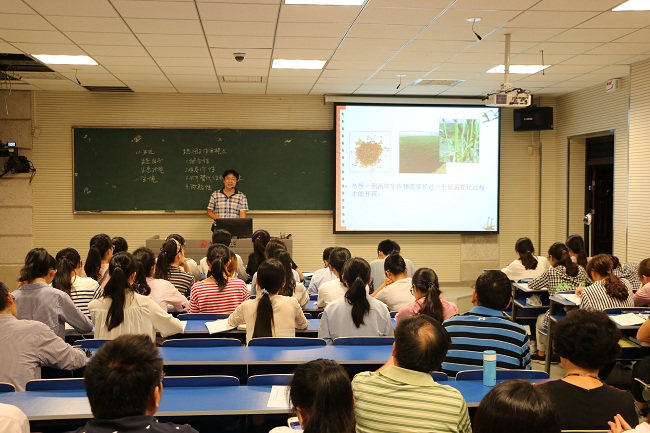 “环境与生态因子”是基础生态学课程的入门知识,是正确认识和理解生物与环境之间关系的前提和基础。该知识点涉及概念多,识记性强,同学们在学习过程中经常会有枯燥乏味之感。在回顾了上节课知识点之后,王友保老师从环境和生态因子的概念入手,紧扣教材内容,针对生态因子的内涵、主次作用及其分类展开了抽丝剥茧式的细致讲授。在此基础上,王老师引出了本节课的知识重难点“生态因子的作用特点”,他通过旁征博引,联系同学们的生活实际和自己的科研成果,与同学们共同探讨了大米镉富集、作物春化作用和四川二郎山的阴阳两重天等现象,从而引导同学们关注生产实践活动中的关键生态因子作用。授课过程中,王友保老师教态自然、语言幽默、举止儒雅;教学内容深入浅出、层次分明、循序渐进;教学形式多样、课件制作美观,这些都充分展示了他深厚的教学功底。