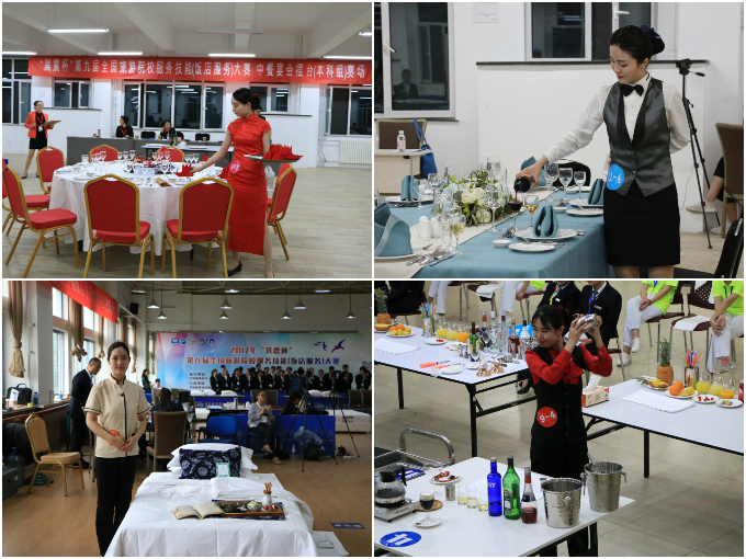 全国旅游院校技能大赛连续九年历经磨砺,已成为我国旅游教育界规模最大、层次最高、赛项最全的竞赛品牌。随着各项赛事的有序开展,来自全国30余个省(自治区、直辖市)的256所本科院校、高职高专院校和中职学校的789名选手展开了激烈比拼。本次比赛设中餐宴会摆台、西餐宴会摆台、中式铺床和鸡尾酒调制四个项目,每个赛项分别包括综合知识理论考核、现场操作和英语水平测试三个环节,11个赛场同时开赛。经过三天激烈的角逐,国旅学子最终获得了中餐宴会摆台(本科组)二等奖、西餐宴会摆台(本科组)二等奖、中式铺床(本科组)三等奖和鸡尾酒调制(本科组)优胜奖的不俗战绩,创造了我校在该项赛事中的最好成绩!
