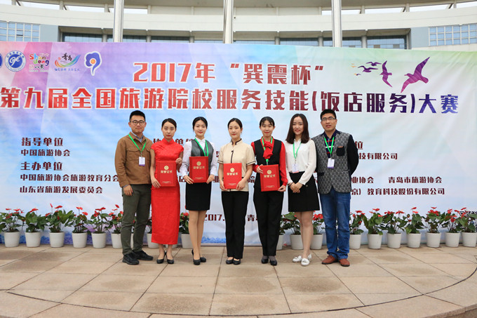 本网讯(国旅学院 赵将)“大赛点亮人生,技能成就梦想”。5月6日至5月9日,由中国旅游协会旅游教育分会和山东省旅游发展委员会联合主办,青岛市旅游发展委员会协办、青岛酒店管理职业技术学院承办的2017年“巽震杯”第九届全国旅游院校服务技能(饭店服务)大赛在青岛举行。中国旅游协会副会长、秘书长张润钢,山东省旅游发展委员会副主任岳滨,山东省商业集团总公司党委常委、董事李林,青岛市旅游发展委员会主任崔德志,中国旅游协会旅游教育分会副会长郑向敏、秘书长刘莉莉、副秘书长彭青,北京巽震数码科技有限公司总经理张博,青岛酒店管理职业技术学院党委书记李达、院长姜玉鹏等各级领导和嘉宾受邀出席开幕式并发表重要讲话。