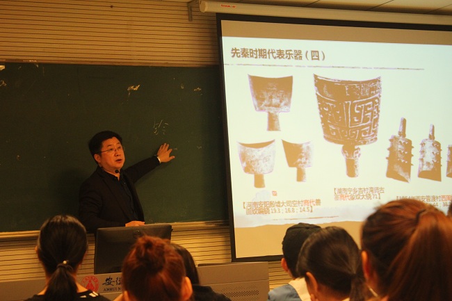 本网讯(教务处 本科教学督导团)10月19日上午,本年度本科教学示范观摩课第17讲在赭山校区田家炳楼8607录播教室举行。音乐学院李城副教授作了“先秦乐器与乐律的历史认知”的示范课教学。校督导团、教务处和学院领导以及部分中青年教师参加了本次观摩活动。