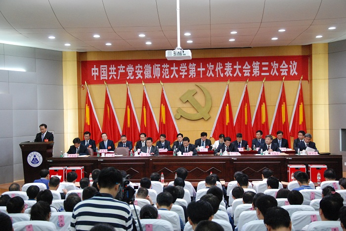 本网讯(党委宣传部 袁黎平/文 校记者团 方旭/图)9月29日下午,中共安徽师范大学第十次代表大会第三次会议召开,选举产生我校出席省第十次党代会的代表。校领导顾家山、王伦、程度、王绍武、李琳琦、朱家存、毕明福和党员代表179人出席了大会。大会由校党委副书记、校长王伦主持。