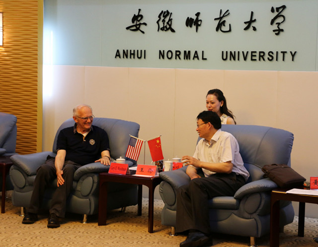 王伦对Weedman先生的再次到访表示热烈欢迎。他指出,在当前办学国际化的时代背景下,两校要以目前进行的合作办学项目为切入点,在人才培养模式和教育理念上寻求更多的合作空间,不断从合作中求同存异、互相借鉴。他希望Weedman校长通过本次访问能对安师大有更深的了解,期待双方能开展更多层次和形式的合作办学项目,其中包括尽快开展英语教师培训项目。王伦说,双方合作的前提是打破语言壁垒,希望英语教师培训项目能提高安师大英语教师的教学水平,以便今后为师大培养出更优秀的学生赴美学习。