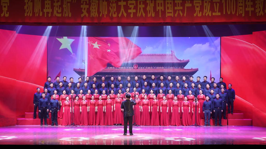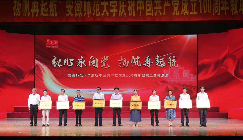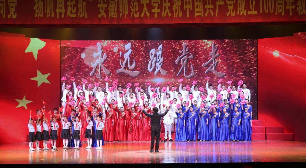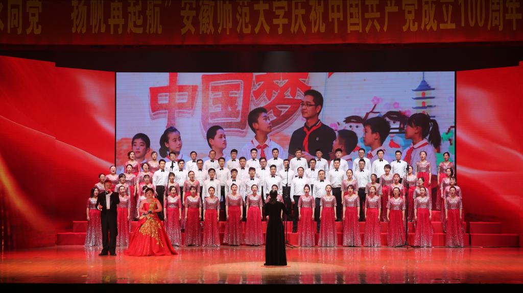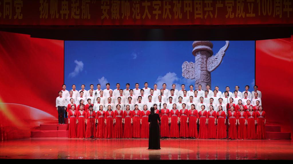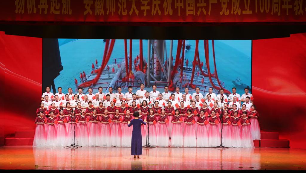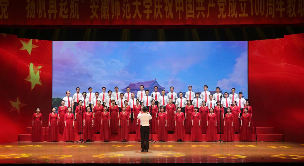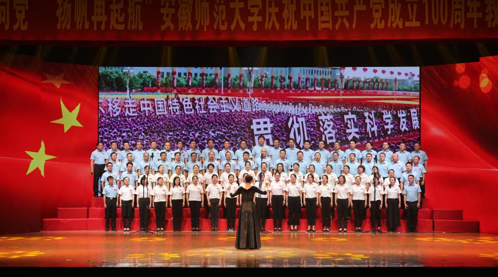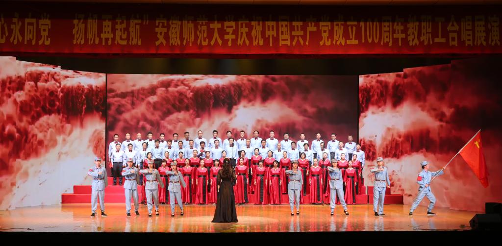 合唱展演分为“开天辟地”“改天换地”“翻天覆地”“经天纬地”四个篇章,充分展现了党史、新中国史、改革开放史、社会主义发展史等不同历史阶段的内容,表达了安徽师范大学教职工献礼建党百年,同心向党,永远跟党走的坚定决心。