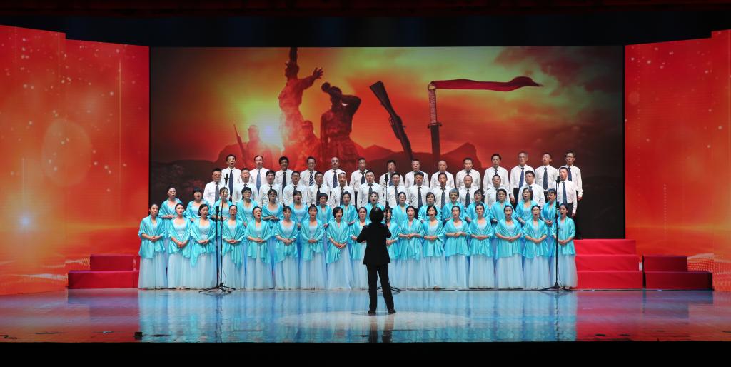 第一个篇章“开天辟地”。党的初心和使命,就是为人民谋幸福,为民族谋复兴。怀着这份初心和使命,党带领全国人民浴血奋战,创造了一个又一个彪炳史册的人间奇迹。机关和国教、物电学院、图书馆、法学院、马克思主义学院、外国语学院合唱队分别演唱了歌曲《没有共产党就没有新中国》《映山红》《在太行山上》《保卫黄河》《红梅赞》《唱支山歌给党听》,教职工们以昂扬的精神状态和饱满的热情演绎了一首首脍炙人口的革命歌曲,为现场师生奉上了一场穿越时空、再现血与火革命岁月的艺术盛宴,表达了广大教职工传承红色基因,厚植家国情怀,将伟大的革命精神转化为推进高水平大学建设的实际行动。