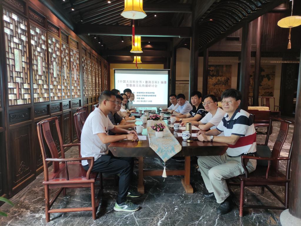 本网讯(历史学院)2021年6月26-28日,由我校历史学院与扬州大学新闻与传媒学院联合举办的“《中国大百科全书》第三版‘徽商百科’编纂暨徽商文化传播研讨会”在扬州召开,标志着我校承担的《中国大百科全书》第三版“徽商百科”纂修工作正在稳步推进。“徽商百科”主编、我校王世华教授,历史学院副院长梁仁志教授及编纂团队黄山学院马勇虎教授、扬州大学秦宗财教授、安徽大学郭睿君博士、我校图书馆董家魁研究馆员和历史学院朱小阳副教授、康健副研究员、祝虻博士等共十余位专家与会。
