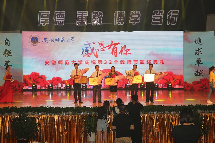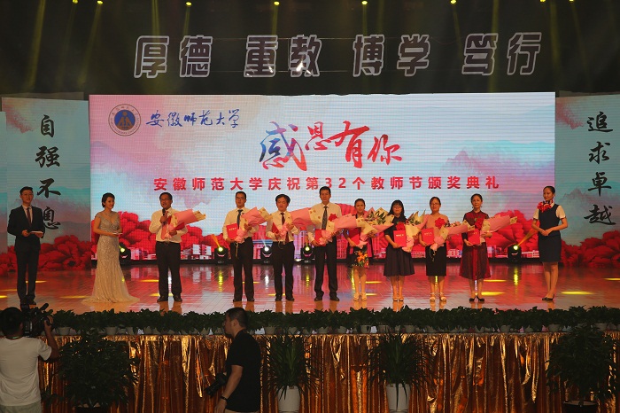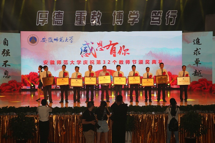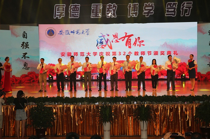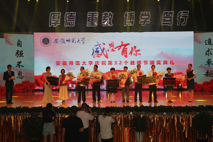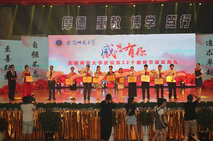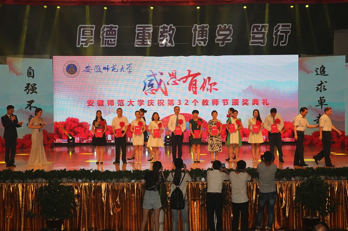 颁奖表彰共分四个批次,与文艺节目穿插进行。荣获表彰的有:从教终身的学问之师、品行之师,2016年安徽师范大学终身成就奖获得者刘学锴、陆同兴;7名带头争做“四有”好教师,用厚德大爱书写教育史诗的2016年度校级教学名师;勤勉创新、锐意进取、做学生知音的15名青年教师教学基本功大赛获奖者和10名科研新秀;秀外慧中、坚韧执着、用爱与智慧塑造学子心灵的10位2016年“巾帼标兵”;以人为本、用热忱与温暖构建和谐师大的2个“先进职工小家”和6个“模范职工小家”;用细致与耐心写就师大春秋的12名档案管理工作先进个人、8个档案工作先进集体;带领学生实践成才、铸就优良品质的10个大学生暑期“三下乡”社会实践优秀组织单位;用爱与使命为学生就业创业保驾护航的5个研究生就业工作先进单位、20位就业工作先进个人、5个本科生就业先进学院和5个本科生就业先进学院标兵。