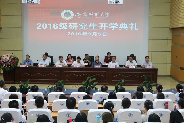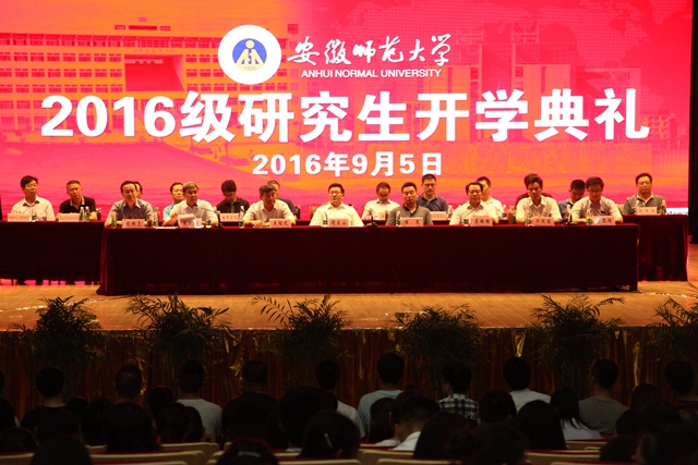 本网讯(研究生院 于珊珊)9月5日下午,我校2016级研究生开学典礼在花津校区大礼堂、赭山校区科技礼堂相继隆重举行。校领导顾家山、程度、王绍武、李琳琦、朱家存、毕明福,各有关职能部门、各培养单位负责同志和1500余名研究生新生参加了典礼。典礼由校党委书记顾家山主持。