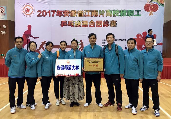 本网讯(校工会) 10月20日至22日,安徽省江南片高校教职工乒乓球混合团体赛在黄山学院举行。省教科文卫体工会主席凤桦致辞,对赛事的举行表示热烈祝贺;黄山学院校党委书记汪枫、副院长胡家俊代表主办单位致欢迎辞并宣布比赛开始。本次比赛共有10支代表队、近百名运动员参加。我校参赛队荣获冠军。