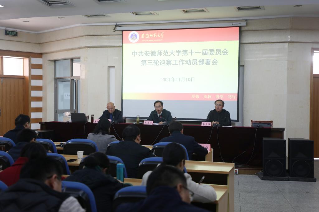 会后,第三轮巡察三个巡察组完成对音乐学院、生命科学学院、数学与统计学院、外国语学院、资产与实验室管理处、总务党委(总务处、校医院)等单位的巡察进驻,并分别召开进驻动员会,传达中央、省委和学校党委关于巡视巡察工作的精神、要求和部署。蒋家平、周新发分别参加各巡察组进驻动员会,对做好巡察工作进行动员讲话;各巡察组组长会上通报了巡察工作的重点任务、总体安排、工作方式和有关要求,各被巡单位主要负责人做表态发言。