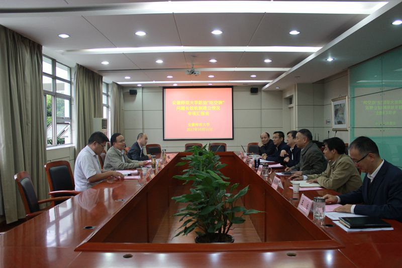 本网讯(人事处 倪建/文 芮先红/图)10月11日,省机关事业单位防治“吃空饷”问题长效机制建立情况专项督查第三督查组来校开展督查工作,省财政厅综合处处长江永泓为组长,省公务员局培训监督处副处长张荣、省财政厅综合处主任科员张飞为成员。校党委常委、副校长王绍武出席会议,学校防治“吃空饷”问题长效机制建立情况自查工作领导组全体成员及相关人员参加会议。