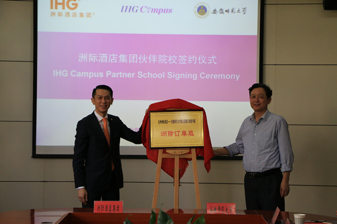 据悉,我校国旅学院长期以来高度重视应用型专业的联合培养及合作办学工作,与开元集团等国内外知名企业集团保持长期良好合作关系,坚持以“国际化、复合型、应用性”为特色,以“学校教育+行业培养”双向教育为抓手,积极开展“教学+实习+实践+就业”四基地建设,成果斐然。据了解,洲际酒店集团(IHG)成立于1777年,是目前全球最大及网络分布最广的专业酒店管理集团,在全球100多个国家和地区在全世界近 100 个国家和地区拥有 5,000 多家酒店和近 74.4 万间客房,拥有洲际、皇冠假日、假日、智选假日、英迪格、华邑酒店等多个国际知名酒店品牌和超过60年国际酒店管理经验,是世界上客房拥有量最大、跨国经营范围最广、在中国接管酒店最多的超级酒店集团,其业务涉及中国大陆25个省、区、市。值得一提的是,在2016杭州二十国集团工商峰会(B20)筹办期间,我校国旅学子在B20峰会主会场(杭州国际会议中心暨杭州洲际酒店)全力投入相关工作,充分展示了师大学子精湛的专业素养和良好的精神风貌,学校因此被授予二十国集团工商峰会(B20)服务保障优秀合作院校称号。