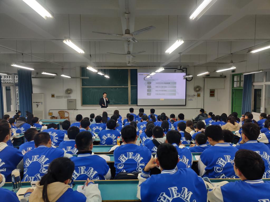 本网讯(化材学院 梅冠东)11月17日,校党委常委、副校长熊宇杰为化材学院2021级新生讲授“四史”教育专题课暨《形势与政策》课。化材学院党委书记汪俊武、部分教师、2021级新生共同听课。