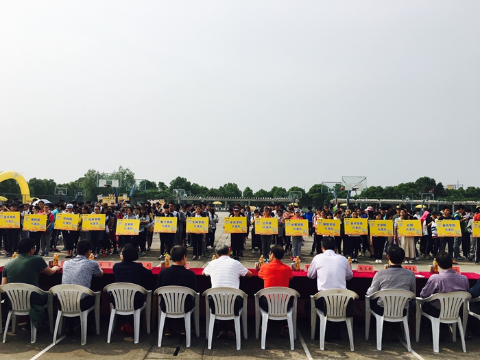 体育学院党委书记袁德水致开幕词。他向全体参赛选手介绍了本次活动目的,一是加强校园体育文化建设,二是扎实做好团员青年的“三走”活动,三是为喜爱篮球的学生搭建一个锻炼身体,提升技能,增强交流的平台。同时,他希望同学们以此为载体,走下网络、走出寝室,走向操场,锻炼身体,提升球技,结下友谊。后由副校长朱家存宣布开幕并为首场比赛跳球。