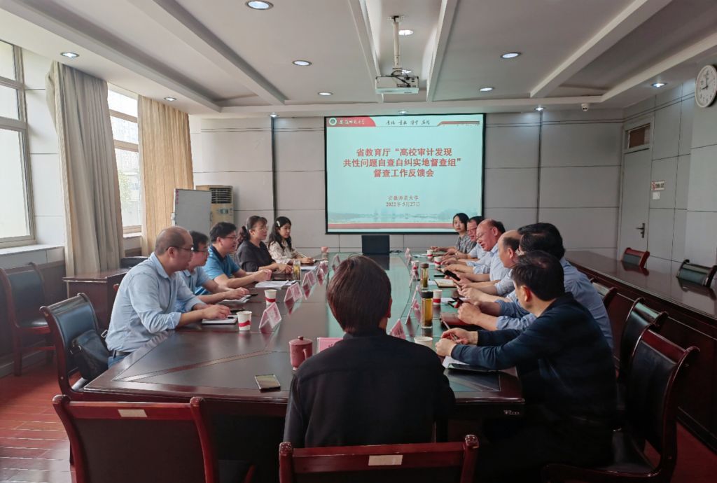 5月25日至27日,省教育厅高校审计发现共性问题自查自纠实地督查第三督查组朱炜等一行5人来校开展督查工作。督查期间,校党委书记、审计委员会主任胡朝荣会见了督查组一行,校党委常委、副校长朱家存,校党委常委、纪委书记、监察专员、审计委员会副主任周新发分别出席并主持督查见面会和反馈会。有关部门负责人分别参加会议。