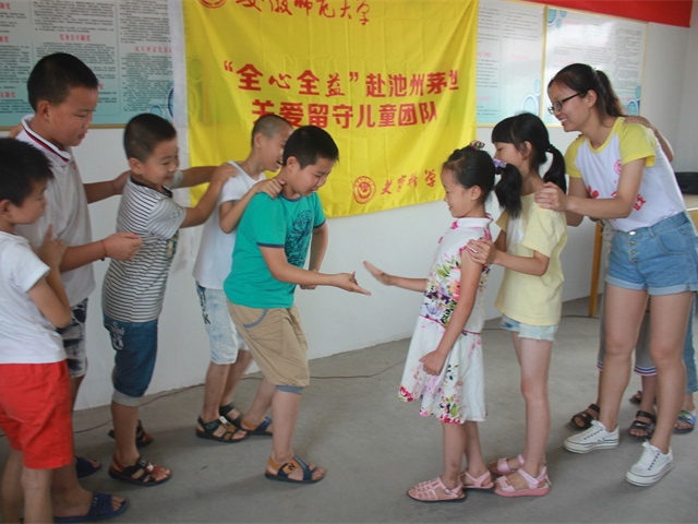 有一群被叫做“留守儿童”的孩子,他们总是无奈地看着爸妈匆忙赶往异乡的背影,他们总是绝望的期盼着父母的回家。幸运的是,教科学院“全心全益”赴池州茅坦村用心关爱留守儿童团队,对孩子们展开了全方位的课业辅导,更是开设了以 “成长路上你并不孤独”为主题的心理健康课,进行心灵的疏导关怀。队长杜昕怡说:“孩子们都像一只只待飞的小候鸟,虽然现在缺少父母的陪伴,但要明白父母的良苦用心,学会感恩父母、珍惜友情!”孩子们都若有所思,眼睛满是坚定的信念。