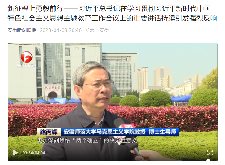 【安徽新闻联播】新征程上勇毅前行——习近平总书记在学习贯彻习近平新时代中国特色社会主义思想主题教育工作会议上的重要讲话持续引发强烈反响