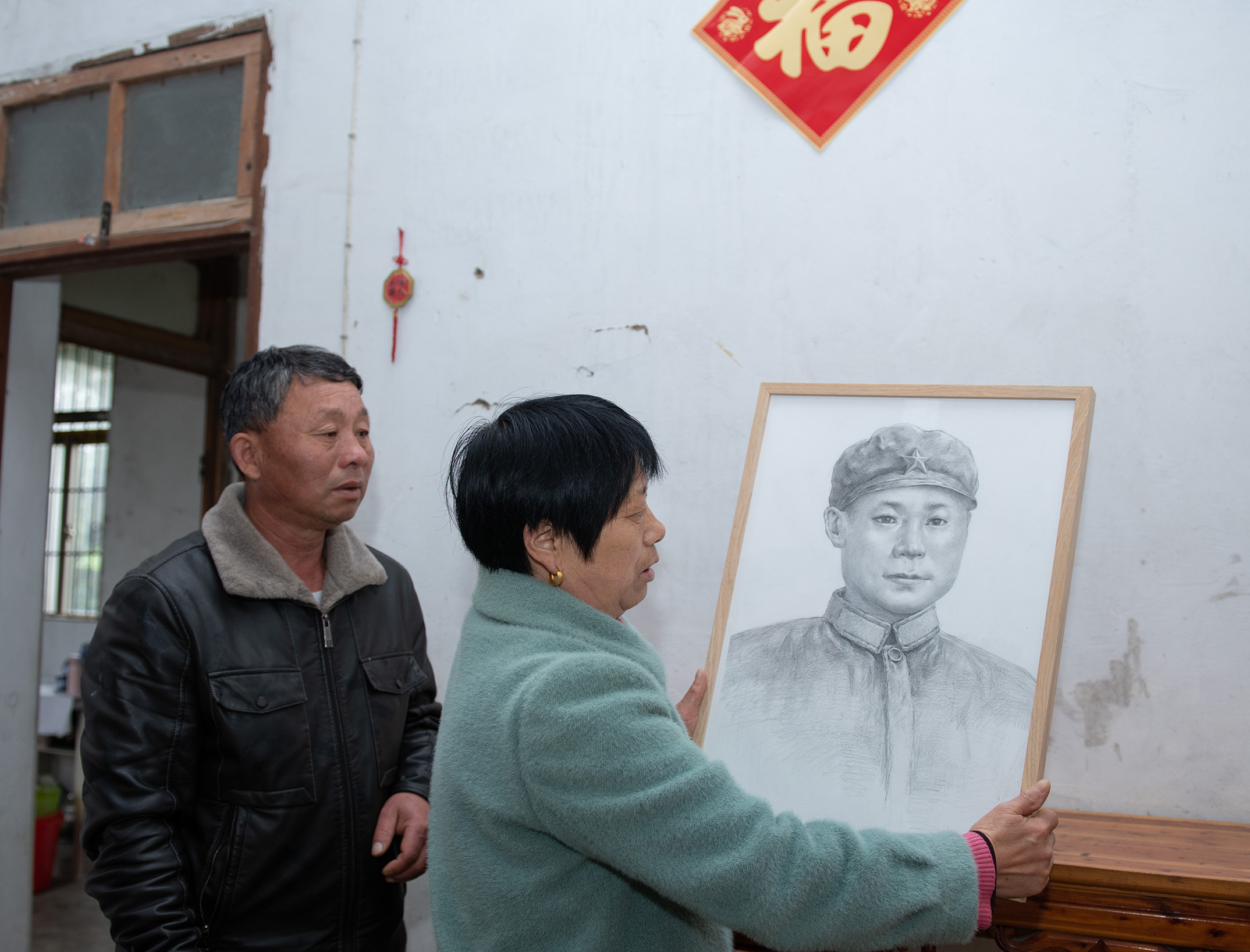 2023年4月4日,对于家住安徽省芜湖市三山经济开发区峨桥镇虬保村的吴开花来说,是一个特别的日子,这一天,她迎来了父亲吴章友烈士的画像,今年59岁的她首次看到父亲的模样,非常激动,几度哽咽,潸然泪下。