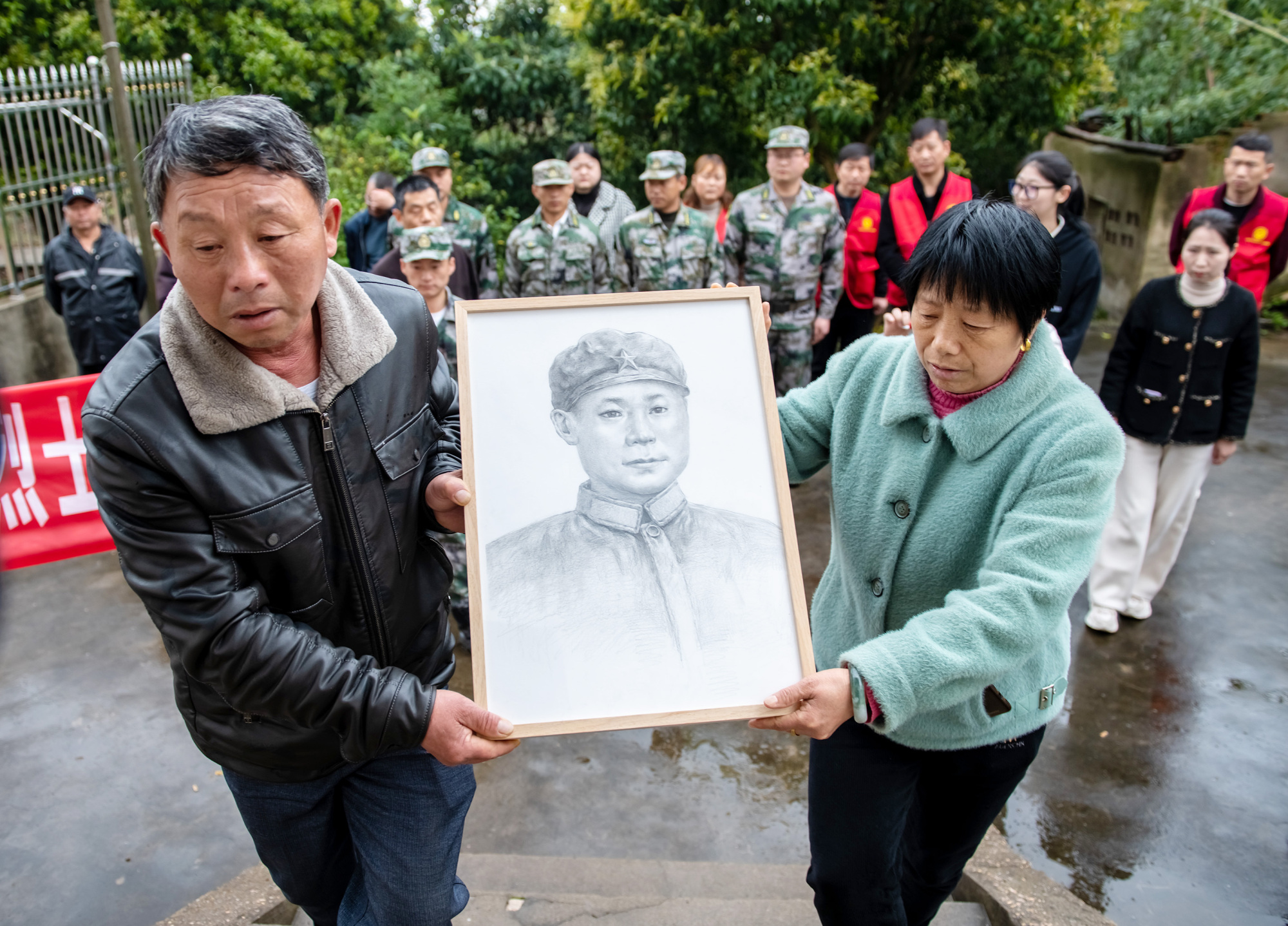 2023年4月4日,安徽芜湖三山经开区退役军人事务科和峨桥镇政府将烈士画像送到烈属手中。
