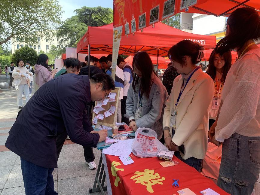 活动现场设置舞台表演和95周年校庆、“五育花开”、社团思政、学术科技创新、志愿服务五个展区。学生社团以“社彩纷呈耀青春,献礼校庆绽芳华”为主题,结合自身特色,通过互动体验、展板宣传等形式展现青春风采,共同为母校庆生。95周年校庆展区设置了丰富的互动体验活动,扎染、投壶、三行情诗、校史知识问答等丰富多彩的体验活动、别具一格的展示方式,带给返校校友及同学们沉浸式的体验。“五育花开”展区开展德智体美劳课程宣传与体验活动,充分发挥学生社团育人功能,让学生社团成为开展“五育并举”教育活动的新载体。社团思政展区开展党的二十大知识问答、党史故事宣讲等,以同学们喜闻乐见的形式开展情景互动式理论学习教育;学术科技创新展区借助趣味模拟实验和科技成果展示进行科学知识宣传,带领大家领略科技的魅力;志愿服务展区以学校的优秀志愿服务项目品牌为线索,共话身边人的志愿故事。