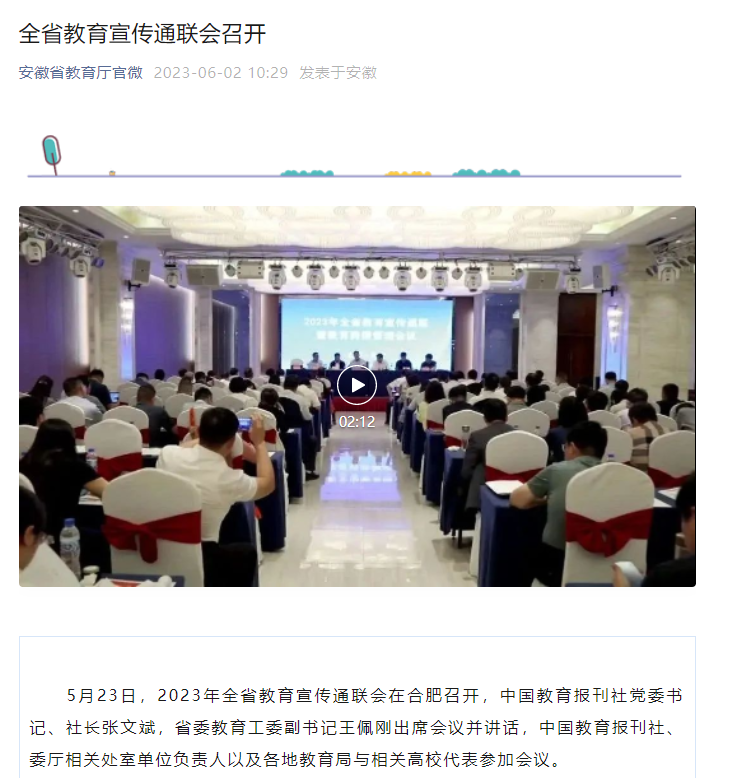原报道阅读链接:【安徽省教育厅官微】https://mp.weixin.qq.com/s/0QzbDL8jbihWlQy_5Bwixg