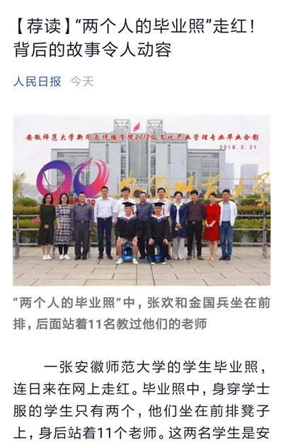 【人民日报官微】安徽师大“两个人的毕业照”走红!背后的故事令人动容
