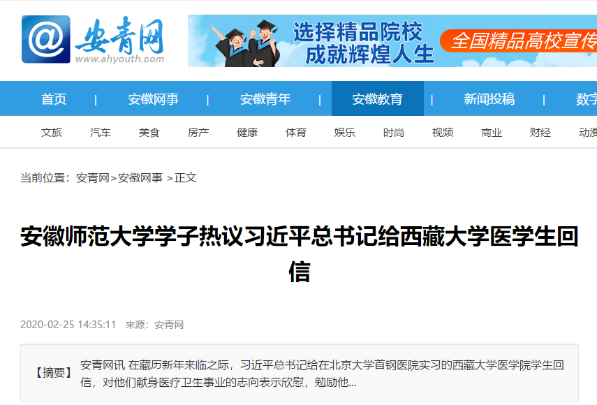 【安青网】安徽师范大学学子热议习近平总书记给西藏大学医学生回信
