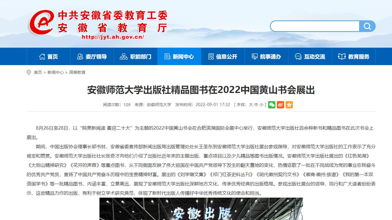 8月26日至28日,以“皖美新阅读 喜迎二十大”为主题的2022中国黄山书会在合肥滨湖国际会展中心举行,安徽师范大学出版社百余种新书和精品图书在此次书会上展出。