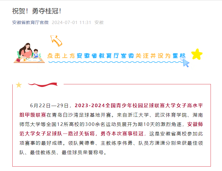 原报道阅读链接:【安徽省教育厅官微】https://mp.weixin.qq.com/s/7ZMLv1WRrJh-HzgXVgxBaw