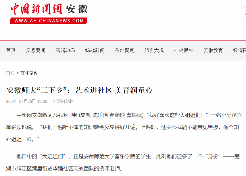 原报道阅读链接:【中国新闻网】http://www.ah.chinanews.com.cn/news/2024/0726/328943.shtml
