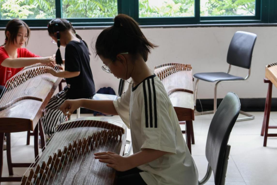 古筝课上,学生大多没有乐器基础,两位老师选择让学生先体验古筝这一乐器,打、勾、抹、托……支教老师们手把手教学生怎么弹奏古筝,纠正学生的错误动作。还有精心准备的舞蹈课上,老师带领学生一个动作一个动作的抠细节,喊节拍,学生们在肆意舞动的同时露出了发自内心的笑容。