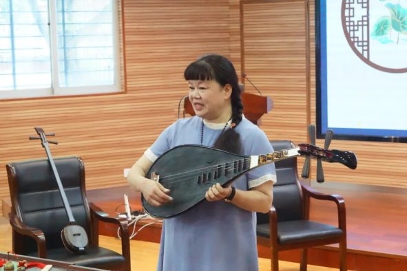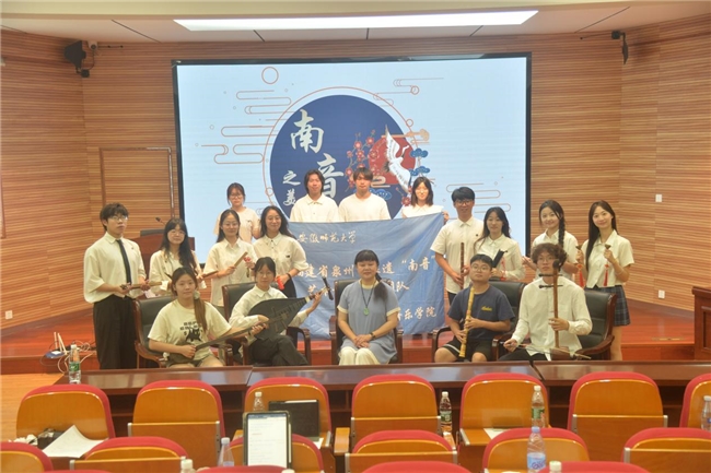 7月20日,安徽师范大学音乐学院赴福建省泉州市非遗“南音”艺术调研实践团队来到学校报告厅学习南音唱腔。